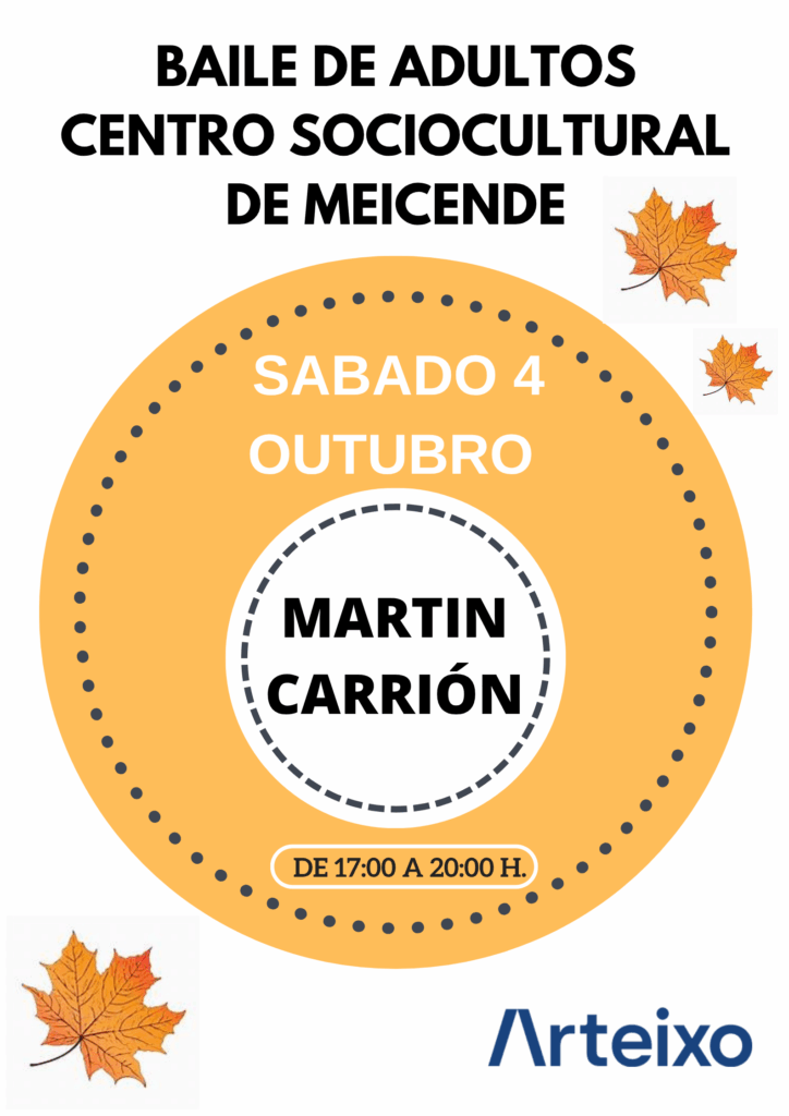 O Centro Social de Meicende acolle a apertura da nova tempada dos «Bailes de Maiores «A Baiuca» Será o próximo sábado 4 de outubro de 17:00 a 20:00h. e amenizada por «Martín Carrión»